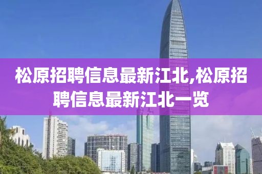 松原招聘信息最新江北,松原招聘信息最新江北一覽